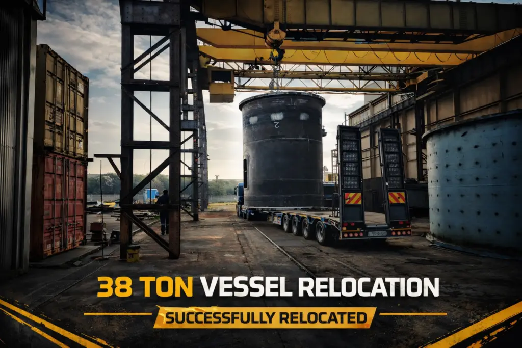 Watsons Rigging & Solutions successfully loaded and transported a 38-ton vessel for heat treatment, ensuring safe handling and secure transport throughout the operation.